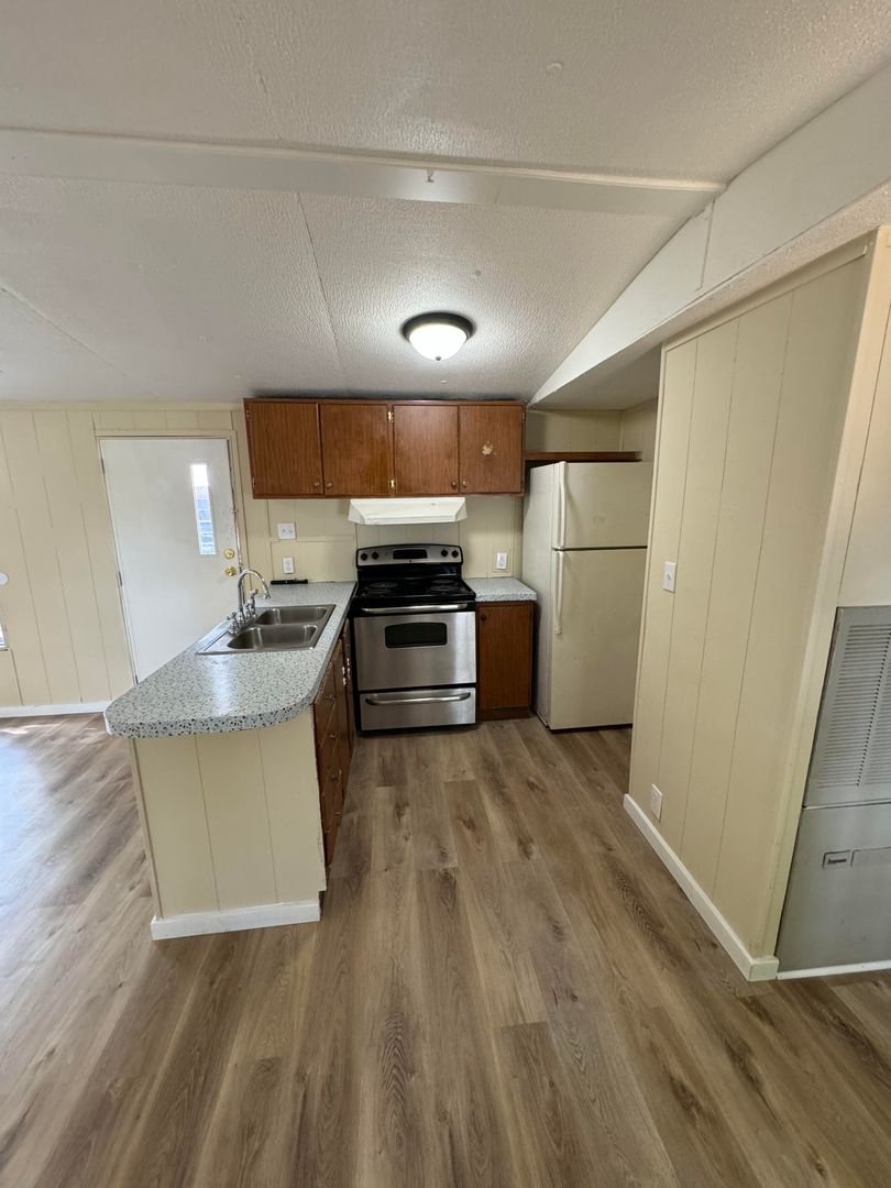 This cozy 2-bedroom, 1-bath mobile home has undergone light remodeling, including new LVT flooring and a fresh coat of paint, giving it a modern and inviting feel. It comes with essential kitchen appliances—fridge and stove—as well as washer and dryer hookups, adding to your daily comfort and convenience.