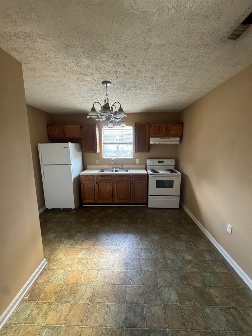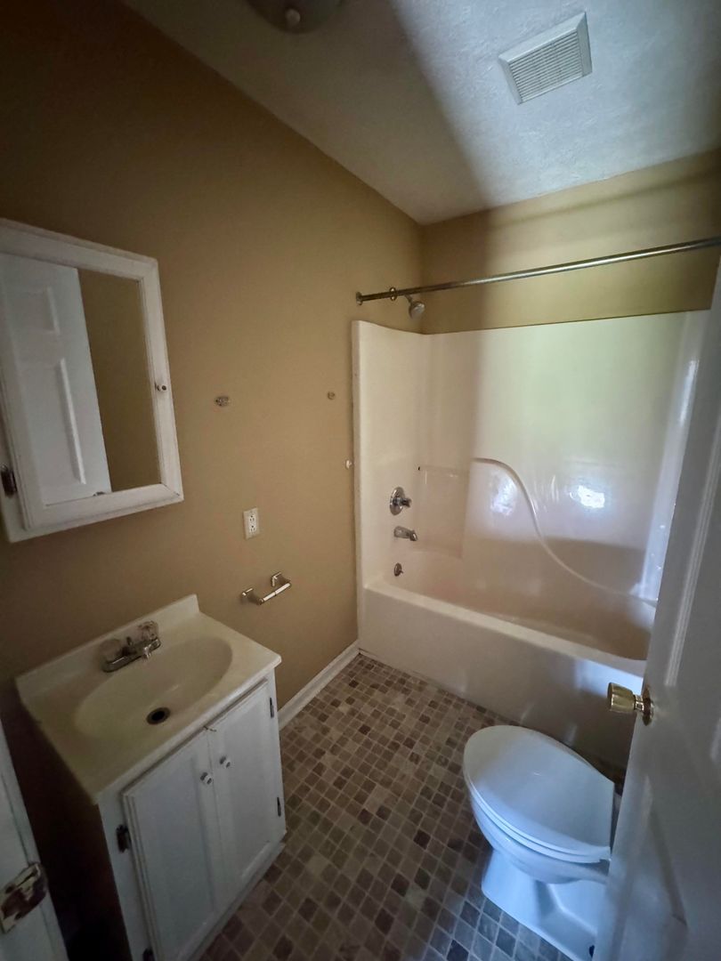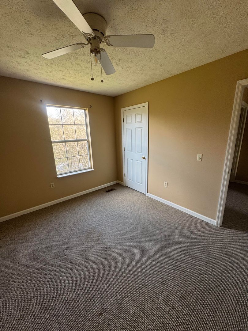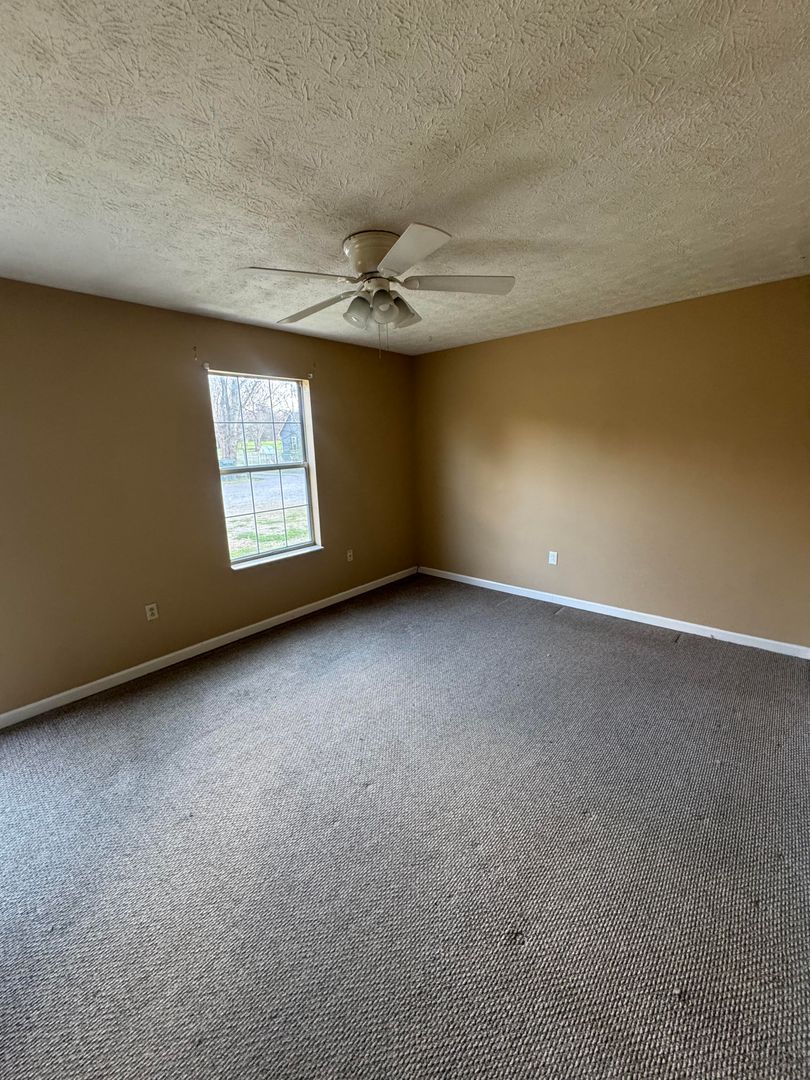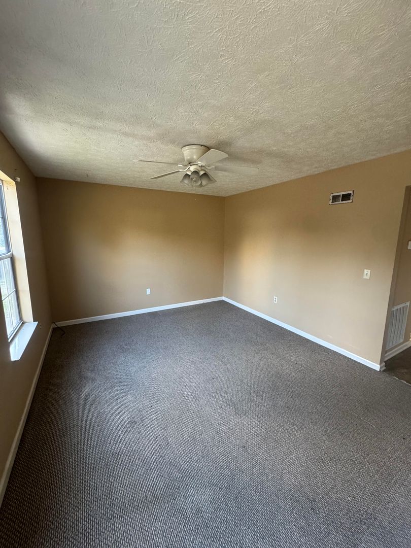 The main level features a large living room, a convenient half bath for guests, and a kitchen equipped with a refrigerator and stove along with plenty of cabinet space. Upstairs you’ll find two well-sized bedrooms and a full bathroom, providing separation between living and sleeping areas.