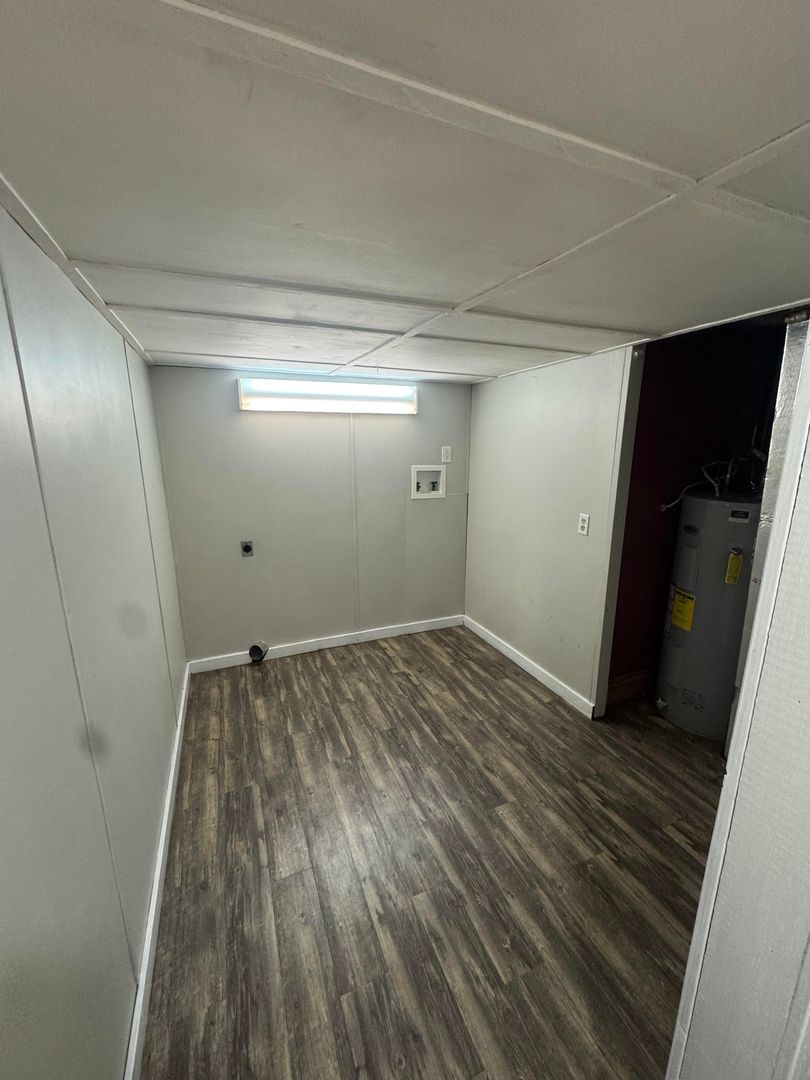 Dedicated laundry area with washer/dryer hookups and extra storage.