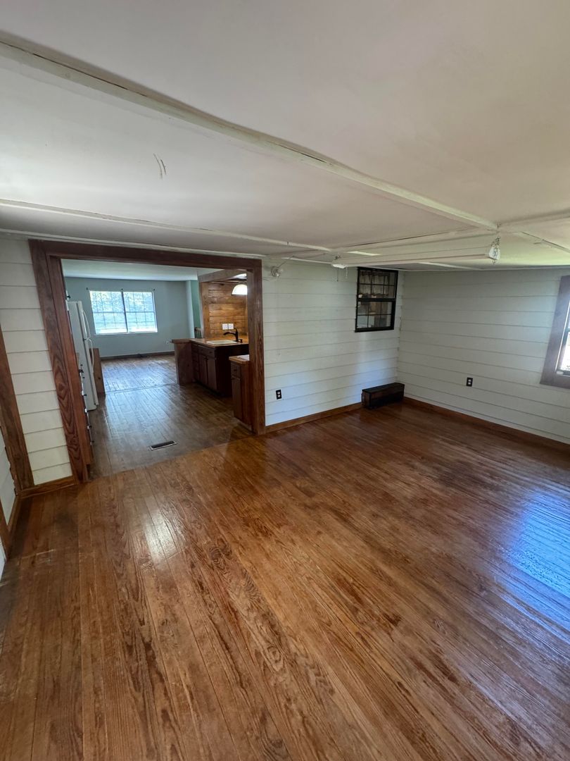 Warm, roomy, and versatile. This split-level home sits on a deep, grassy lot with mature trees and a classic wood-siding exterior with red shutters. Inside you’ll find real wood floors, generous room sizes, and flexible spaces that work for family, roommates, or a home office setup.