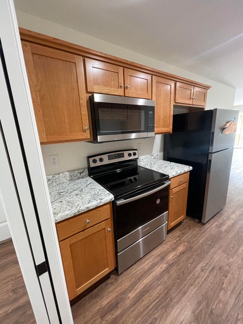 Indulge in a lifestyle of convenience and comfort with these modern duplexes. The units feature spacious 2-bedroom, 2-bathroom layouts with luxury vinyl tile (LVT) flooring, offering a clean and modern look. Your culinary endeavors are supported by a well-equipped kitchen, and the back patio offers a cozy outdoor space for relaxation.