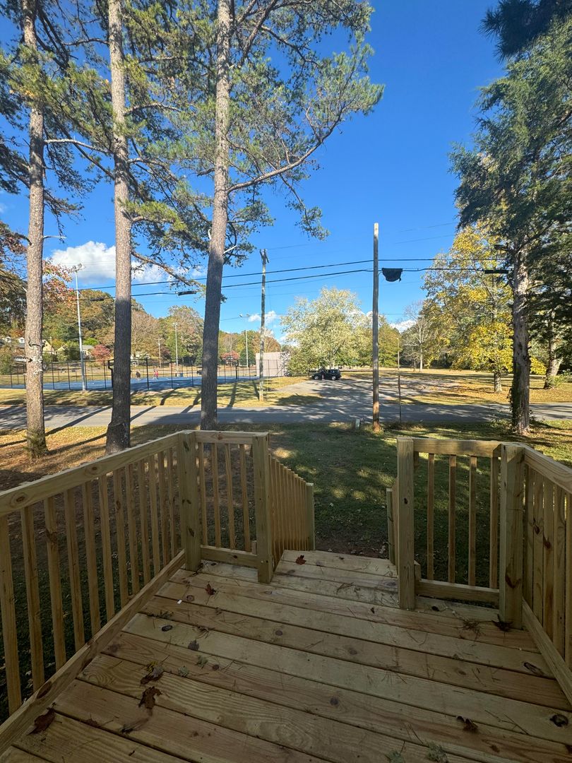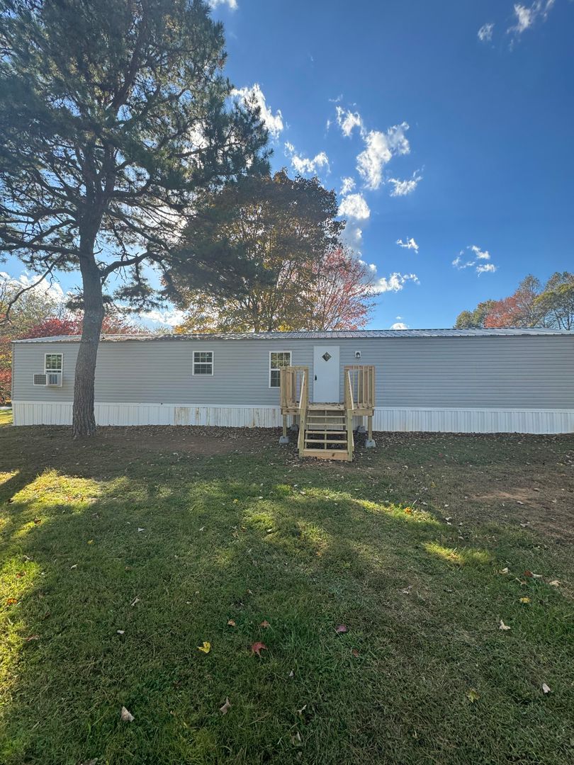Outdoor Charm: Surrounded by tall, whispering trees, this mobile home offers a serene outdoor setting, complete with a sturdy deck to enjoy morning coffees or twilight gatherings.