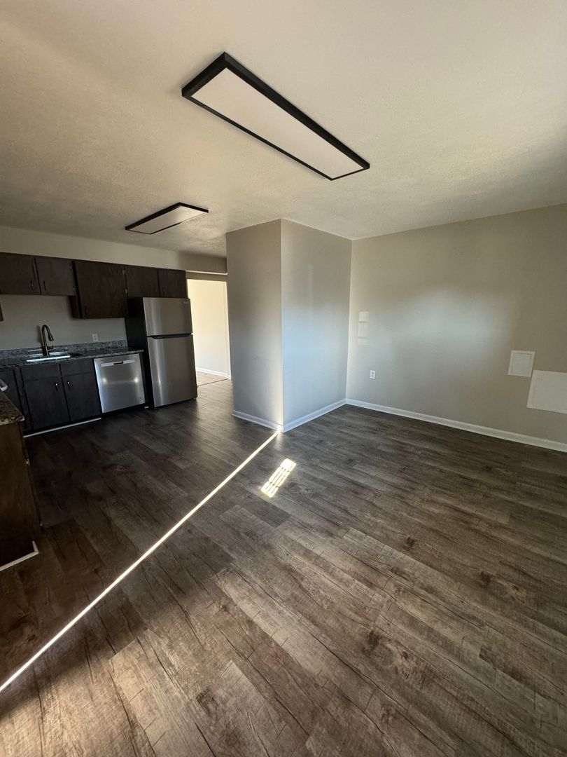 Luxury Vinyl Tile Flooring: Durable and stylish LVT flooring throughout the apartment.