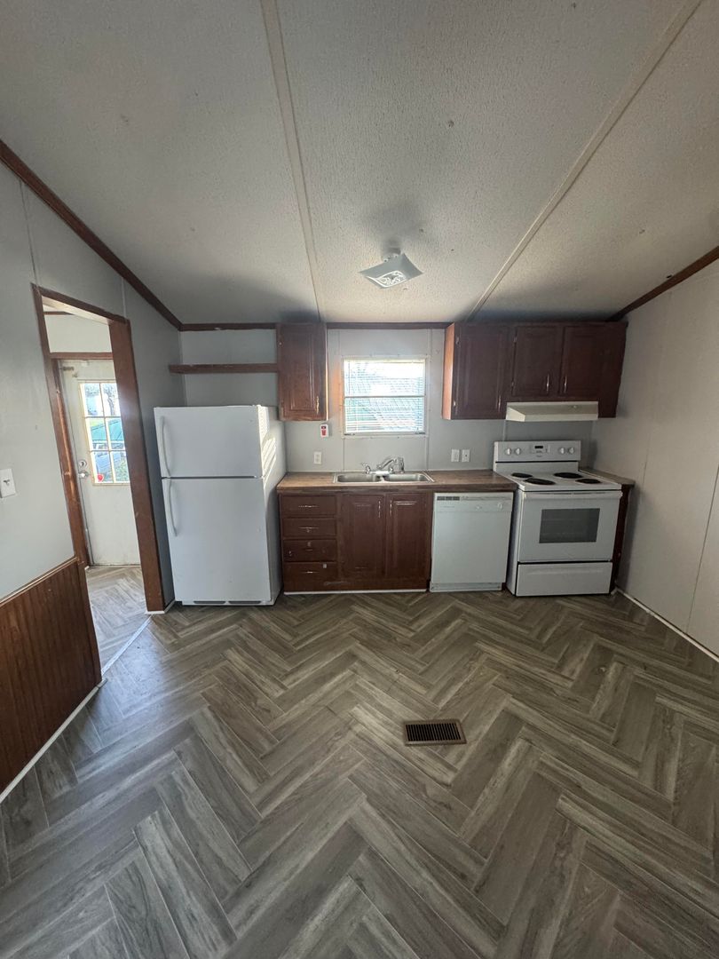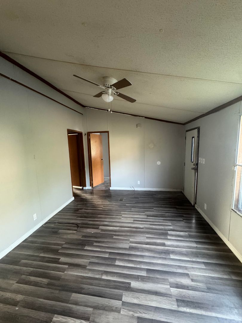 The home features a comfortable living area, functional kitchen, and well-sized bedrooms. You’ll also enjoy central heat and air, plus washer and dryer hookups for added convenience. The kitchen comes equipped with a refrigerator, stove, and dishwasher, making it fully move-in ready.