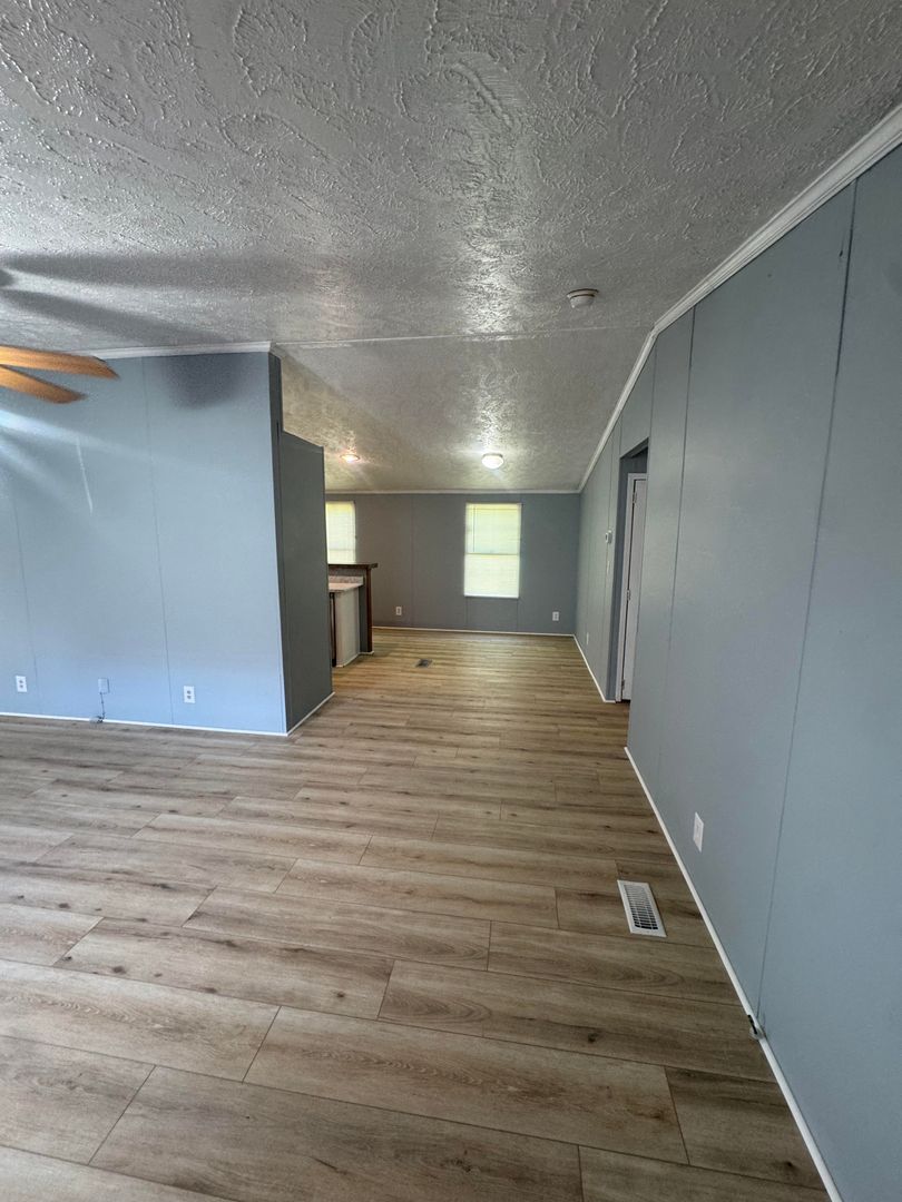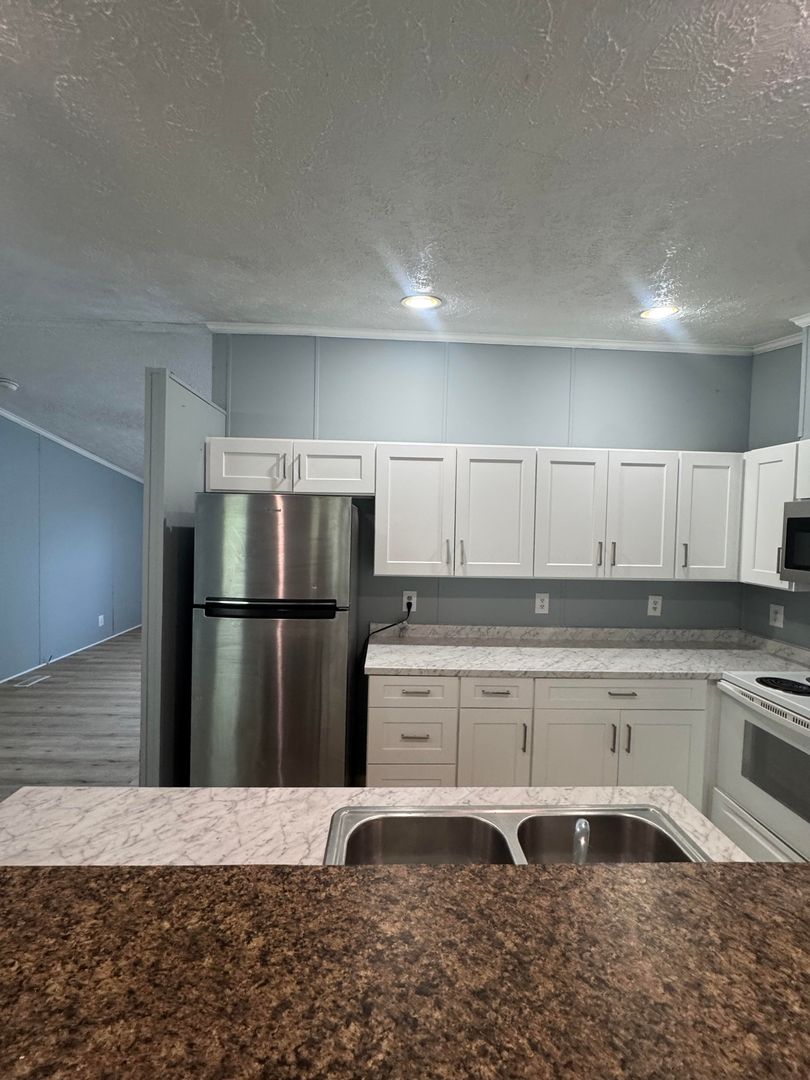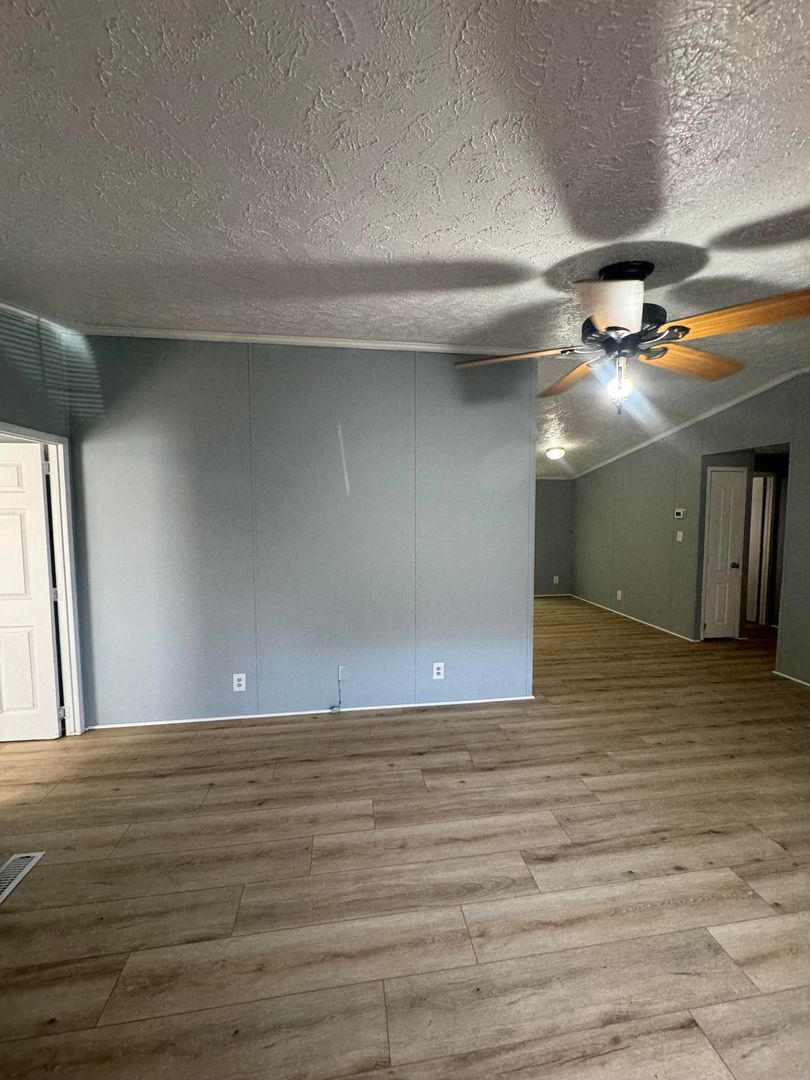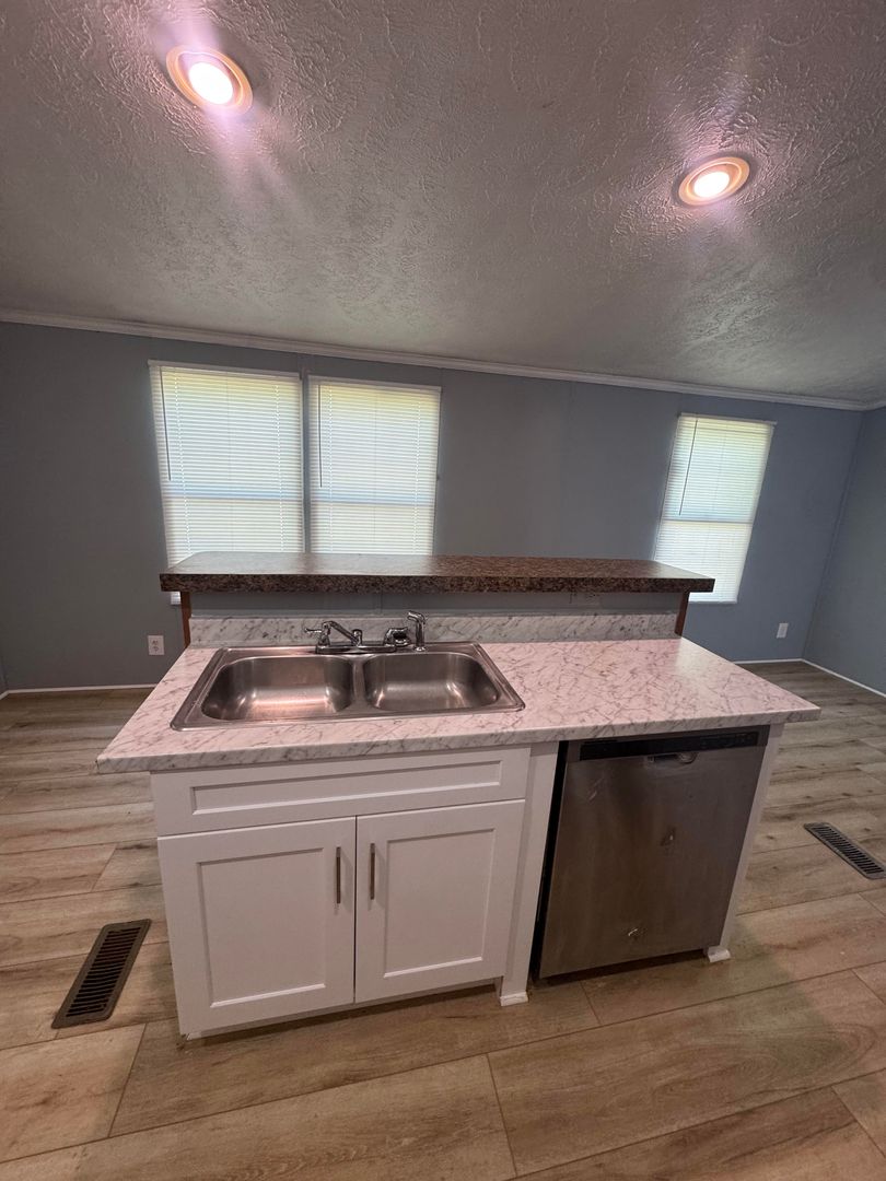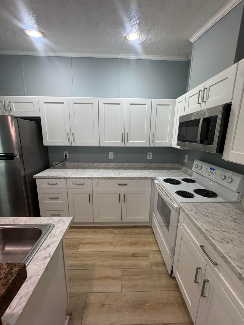 Inside, you’ll find all new LVT flooring and fresh paint throughout, giving the home a clean, modern feel. The open living area flows into a spacious kitchen featuring updated cabinetry, ample counter space, and a full appliance package including refrigerator, stove, dishwasher, and microwave. Washer and dryer hookups are also provided.