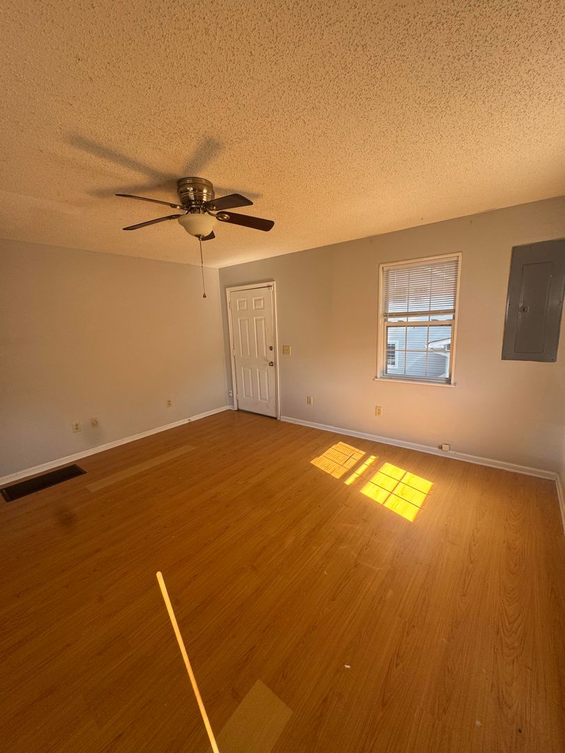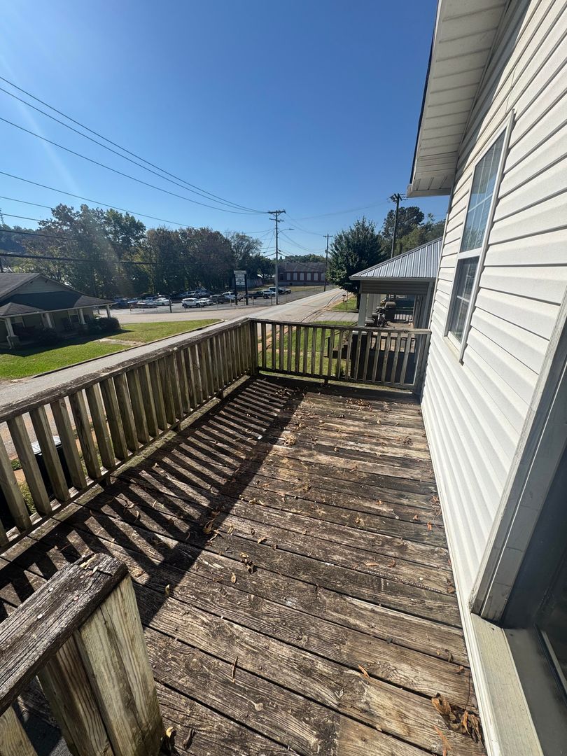 Bright upstairs 3-bedroom, 2-bath duplex with a wraparound deck—perfect for morning coffee. Layout features a comfortable primary bedroom, two smaller secondary bedrooms, and a compact, efficient kitchen with great cabinet storage and a double sink. Inside you’ll find durable laminate/LVP flooring, central heat & air, and washer/dryer hookups in a dedicated laundry room. Exterior stairs lead to a private entry; off-street gravel parking on-site. Minutes to downtown shops, dining, and Hwy access.
