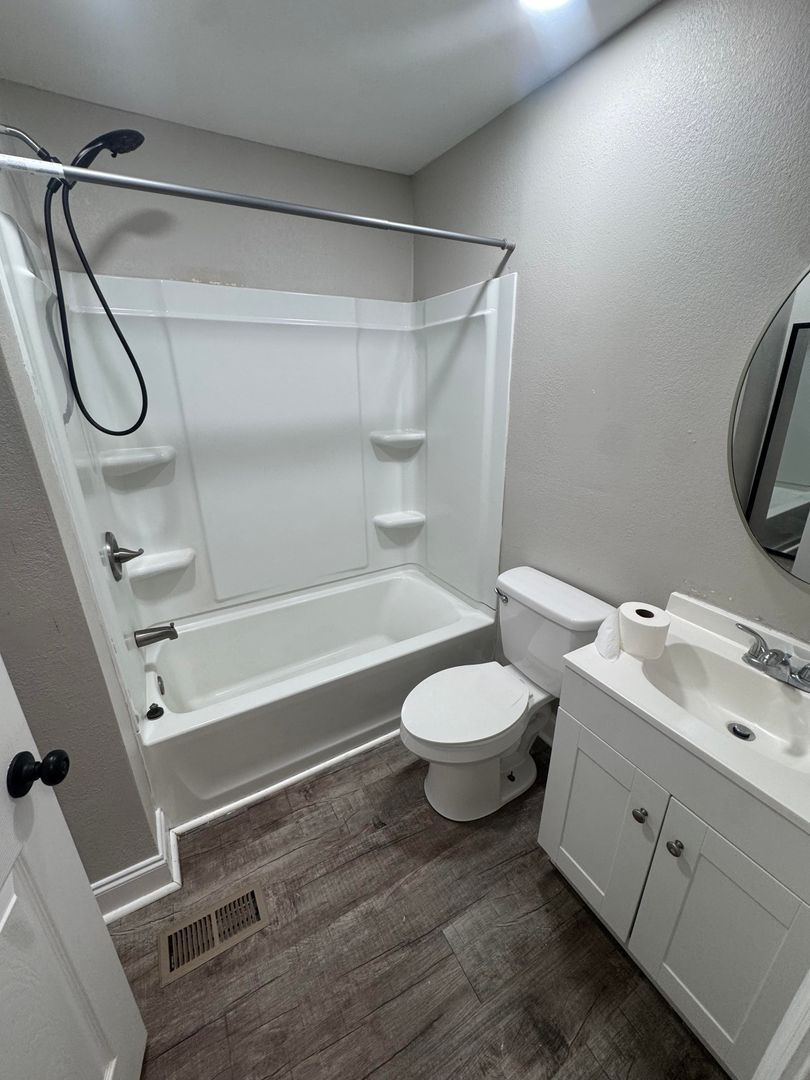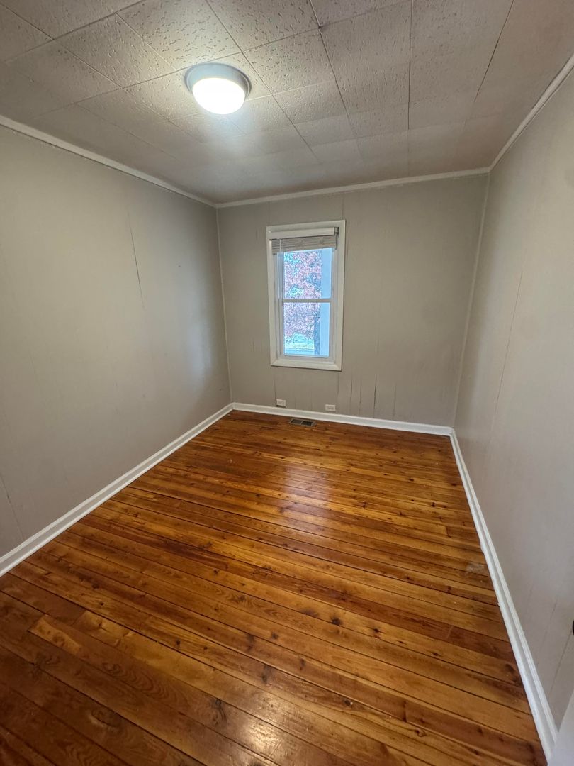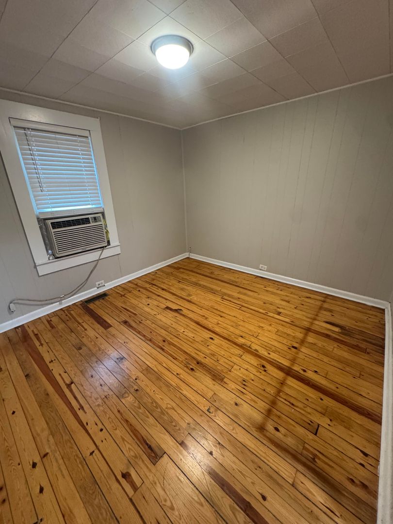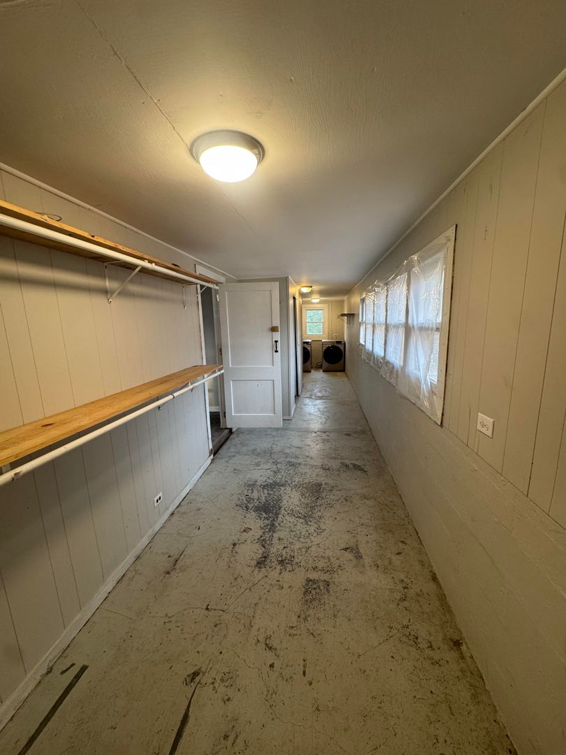 Inside, you’ll find a spacious kitchen with plenty of cabinet space and a large window that fills the room with natural light. The home features original hardwood floors in the bedrooms, an updated bathroom, and central heat and air throughout for year-round comfort. There’s also a long enclosed side room that adds extra storage or workspace options, plus a basement-entry area for even more room.