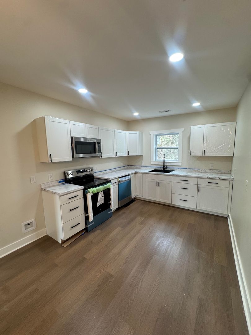 Step into a bright, open layout featuring all-new flooring, fresh paint, updated lighting, and a clean, modern feel throughout. The kitchen is completely renovated with brand-new cabinets, countertops, and stainless appliances including a refrigerator, stove, microwave, and dishwasher. The main bedroom includes a true en-suite bathroom with a beautifully tiled walk-in shower and updated vanity.