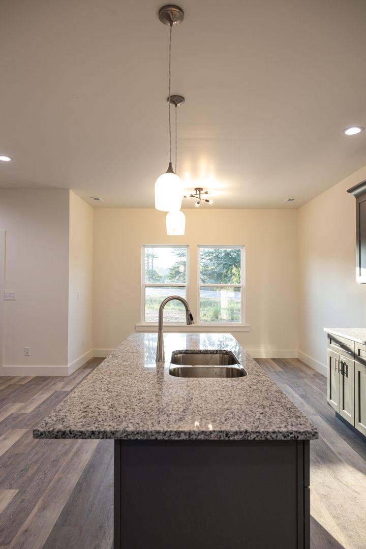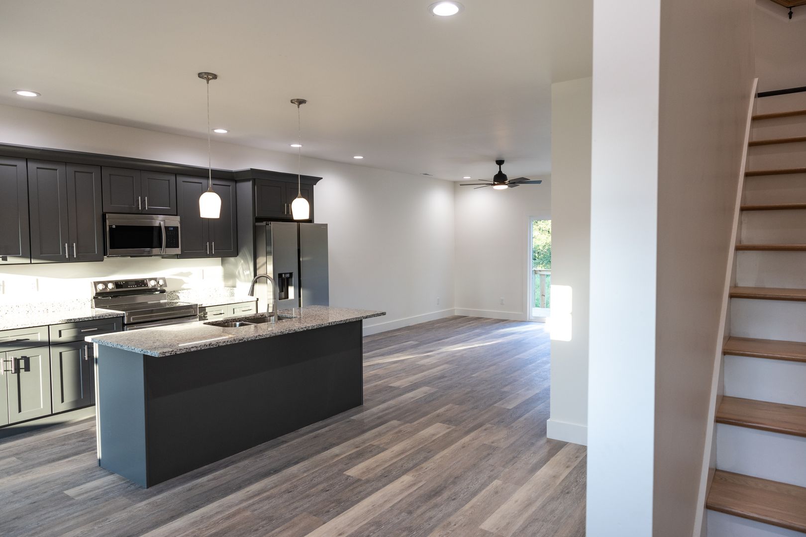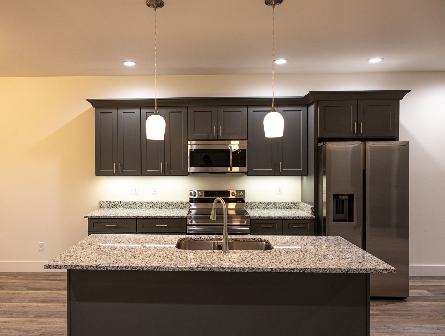 *Modern Kitchen: Features a central island, granite countertops, and a full appliance package including refrigerator, stove, dishwasher, and microwave.