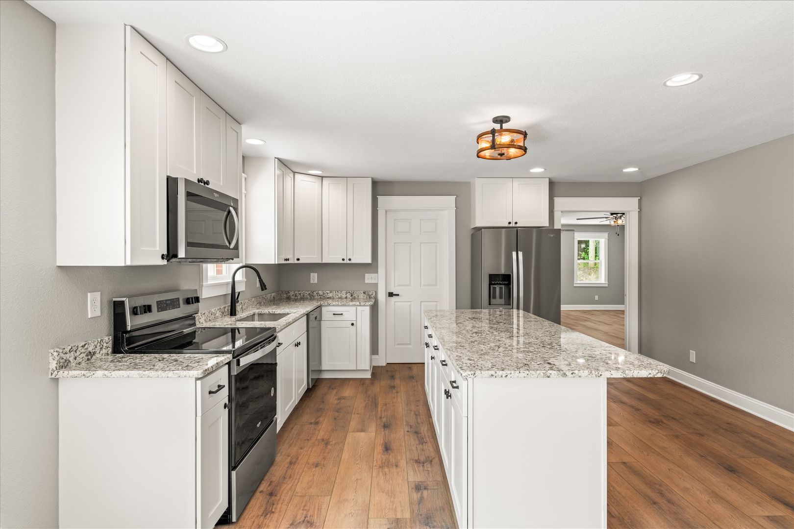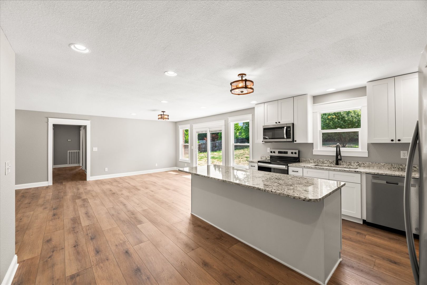 This fully renovated one-level brick rancher offers high-end living with space to match. Featuring 4 oversized bedrooms and 3 full baths, this home is highlighted by a truly massive on-suite with a walk-in closet and spa-style bathroom. The wide-open kitchen stuns with granite counters, stainless steel appliances, and a large island—perfect for entertaining.