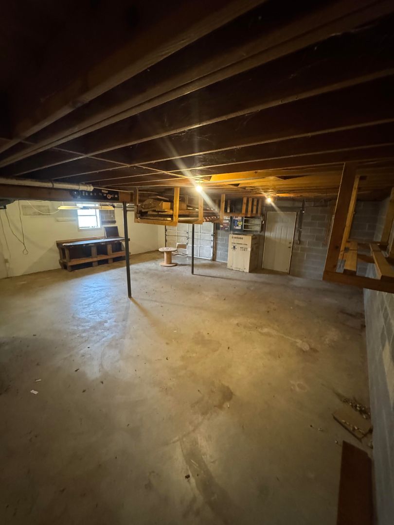 Large unfinished basement perfect for storage, workshop space, or hobbies