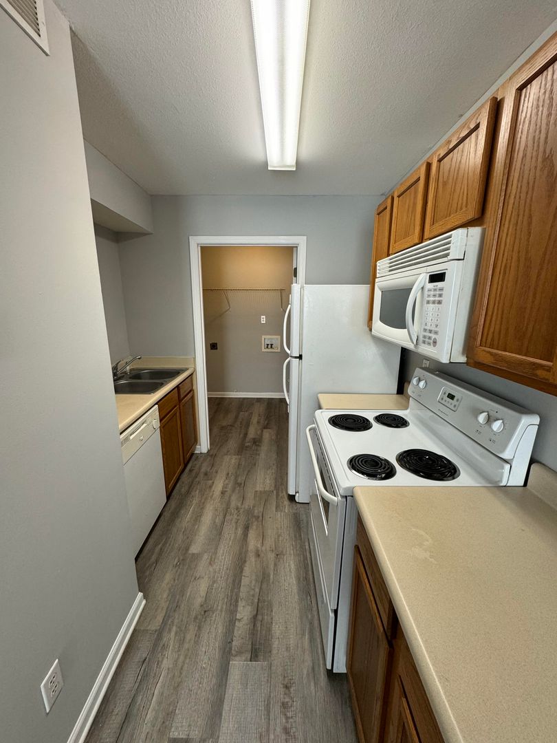 The apartment features a well-appointed kitchen equipped with a refrigerator, stove, dishwasher, and microwave, perfect for those who enjoy cooking at home. In-unit washer and dryer hookups add to the convenience, ensuring laundry day is hassle-free.